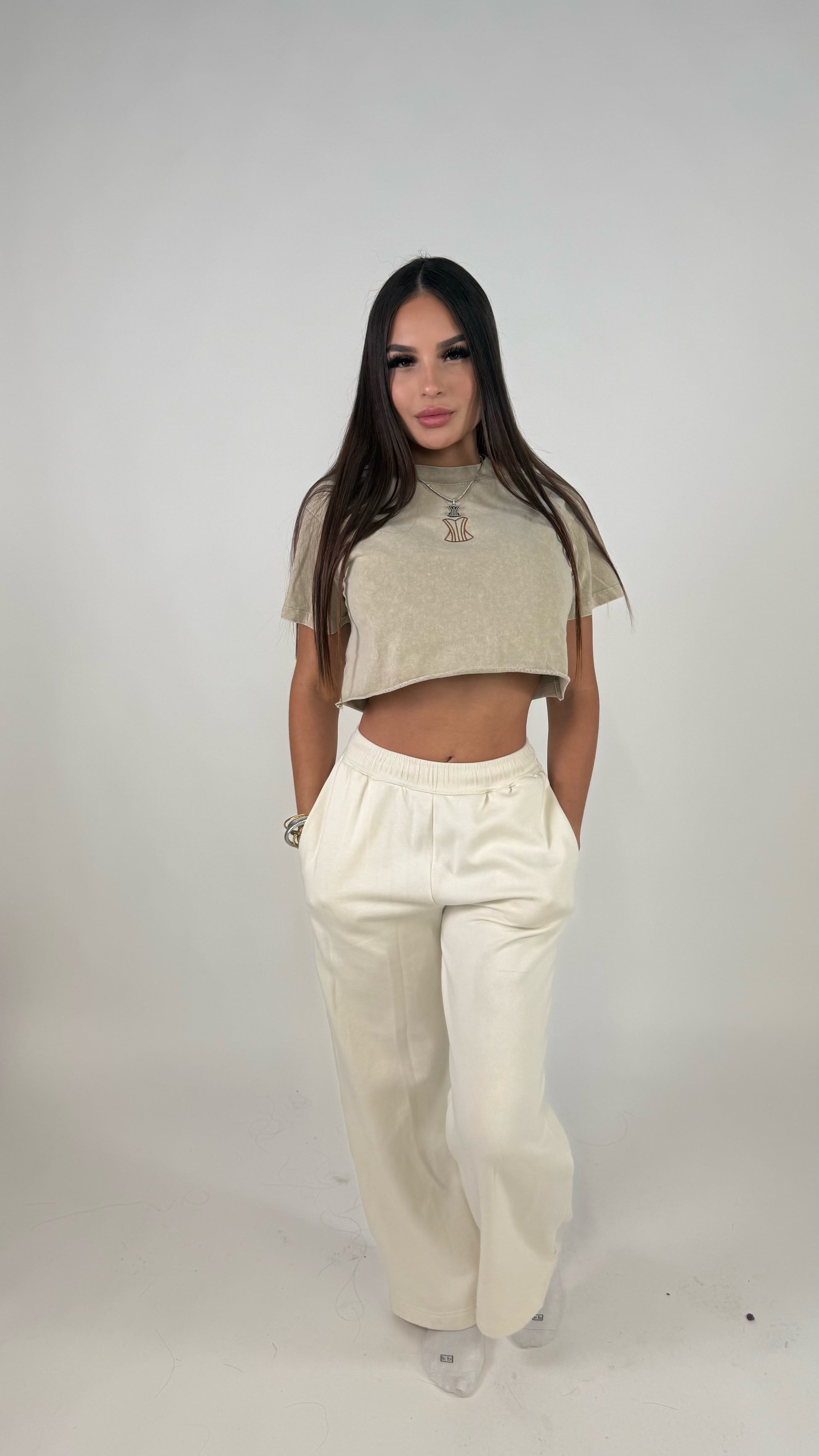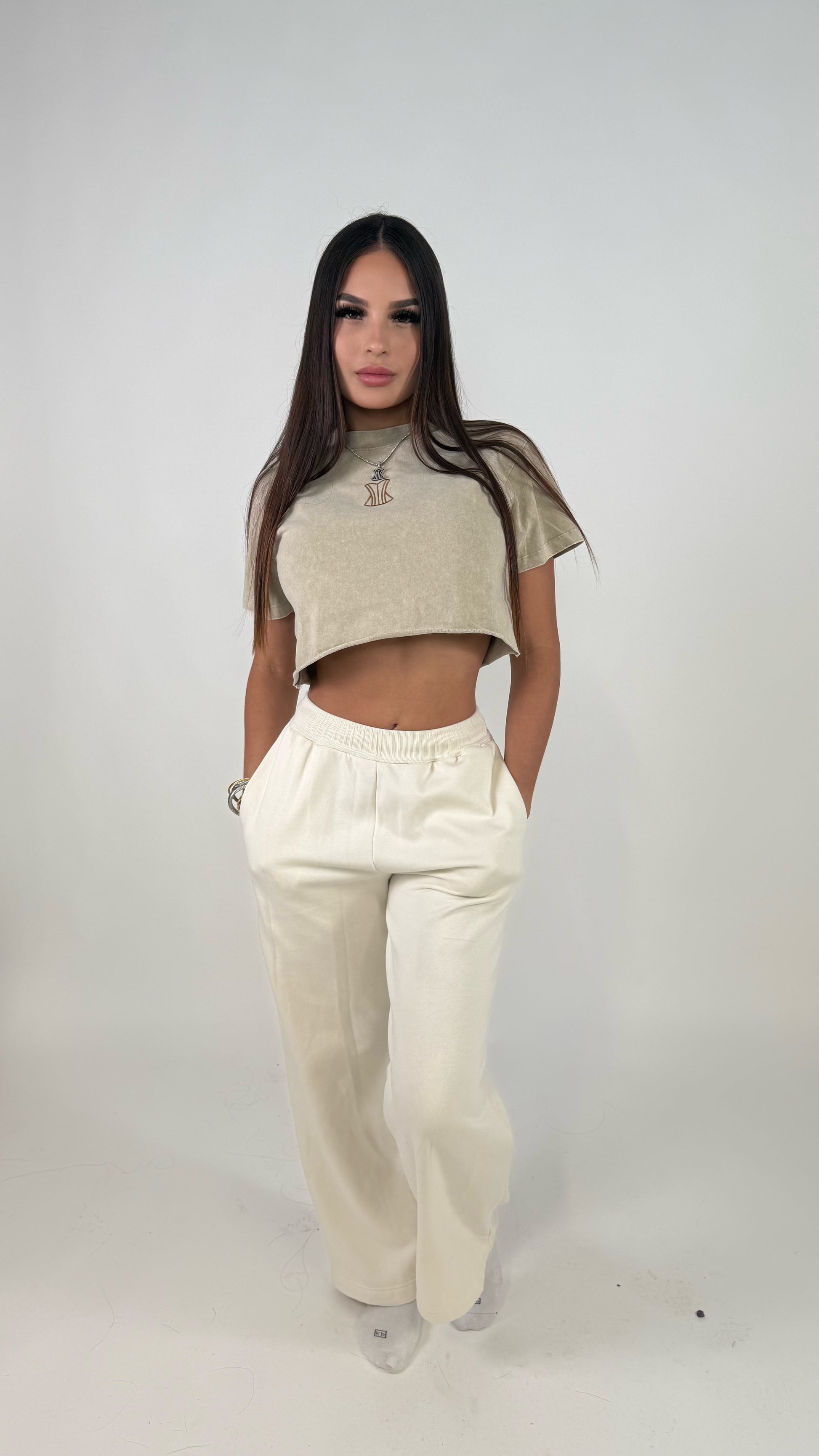 Beige crop top matching (women)